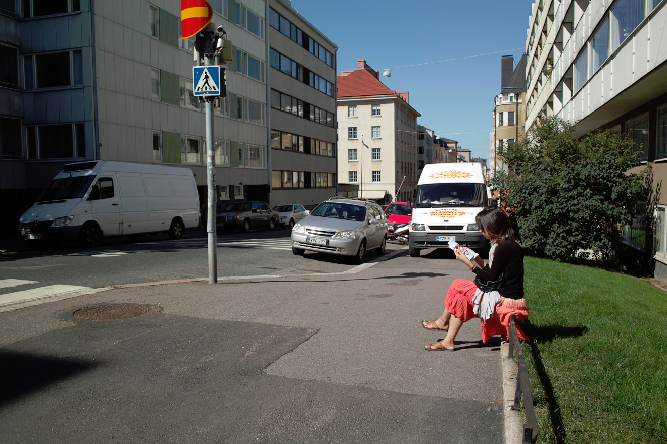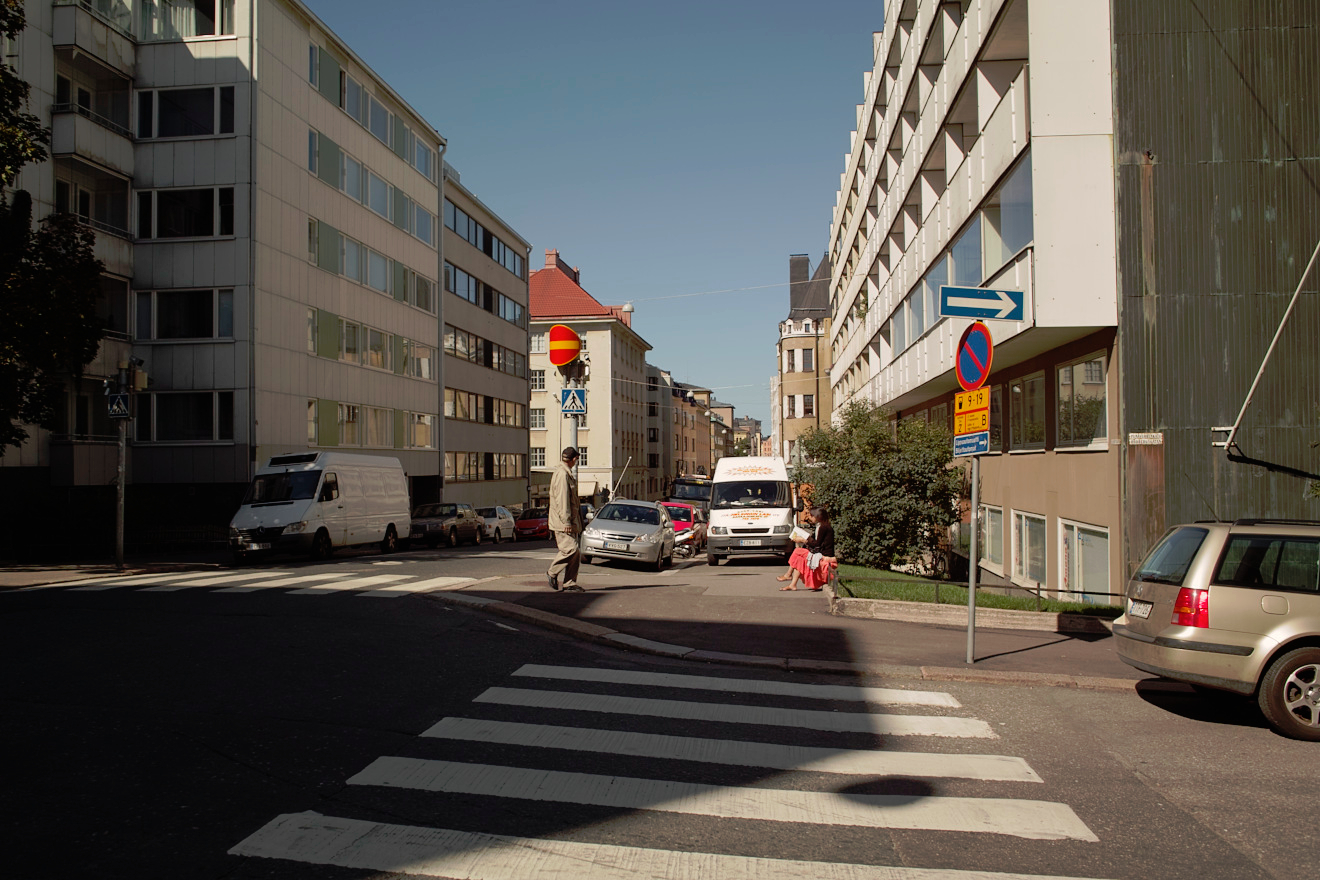 г. Хельсинки. Кривой дорожный знак хорошо заметен с поперечной дороги.