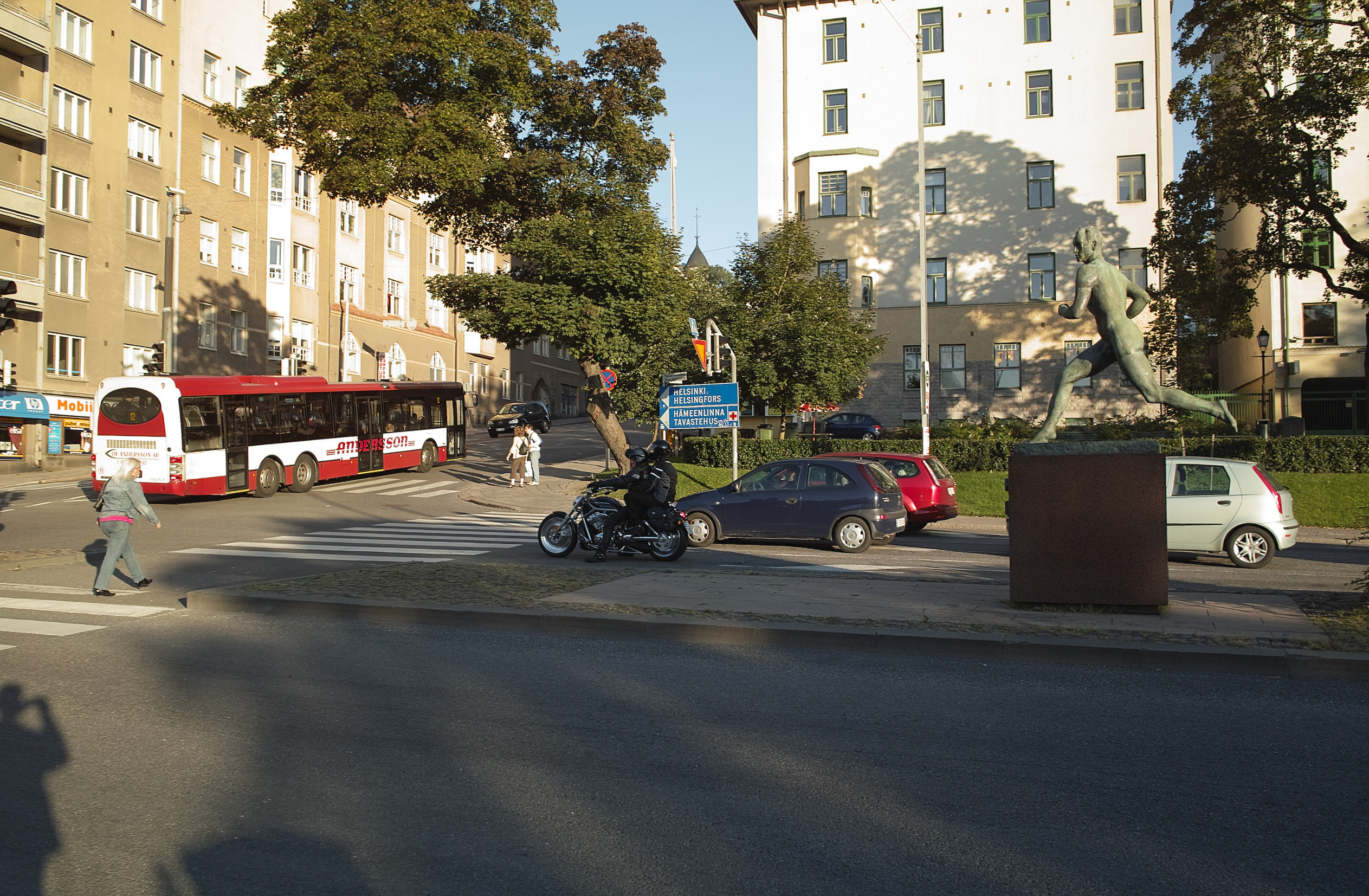 г. Турку. «Летучий финн», Фантом, Человек-часы, Машина для бега (англ. Robot runner), Великий молчальник, всё это Па́аво Йо́ханнес Ну́рми — финский бегун на средние и длинные дистанции, девятикратный олимпийский чемпион, обладатель наибольшего количества олимпийских медалей (12) в истории лёгкой атлетики. Бронзовые фигуры в его честь исполненные Вайнё Аалтоненом находятся в музее Атениум (1925), перед Олимпийским стадионом Хельсинки (1952), а копия вот она, в Турку (1955) где он родился и начал бегать.