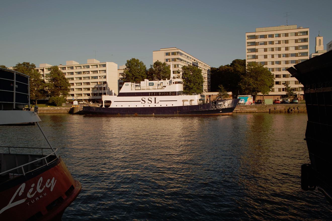 г. Турку. Паром Silja Europa — грузопассажирский паром типа ро-ро компании Silja Europa OY. Построен на верфи Meyer Werft в немецком городе Папенбург в 1993 году. Главным архитектором был Per Dockson, Швеция. Эксплуатировался на паромной линии Турку — Стокгольм.